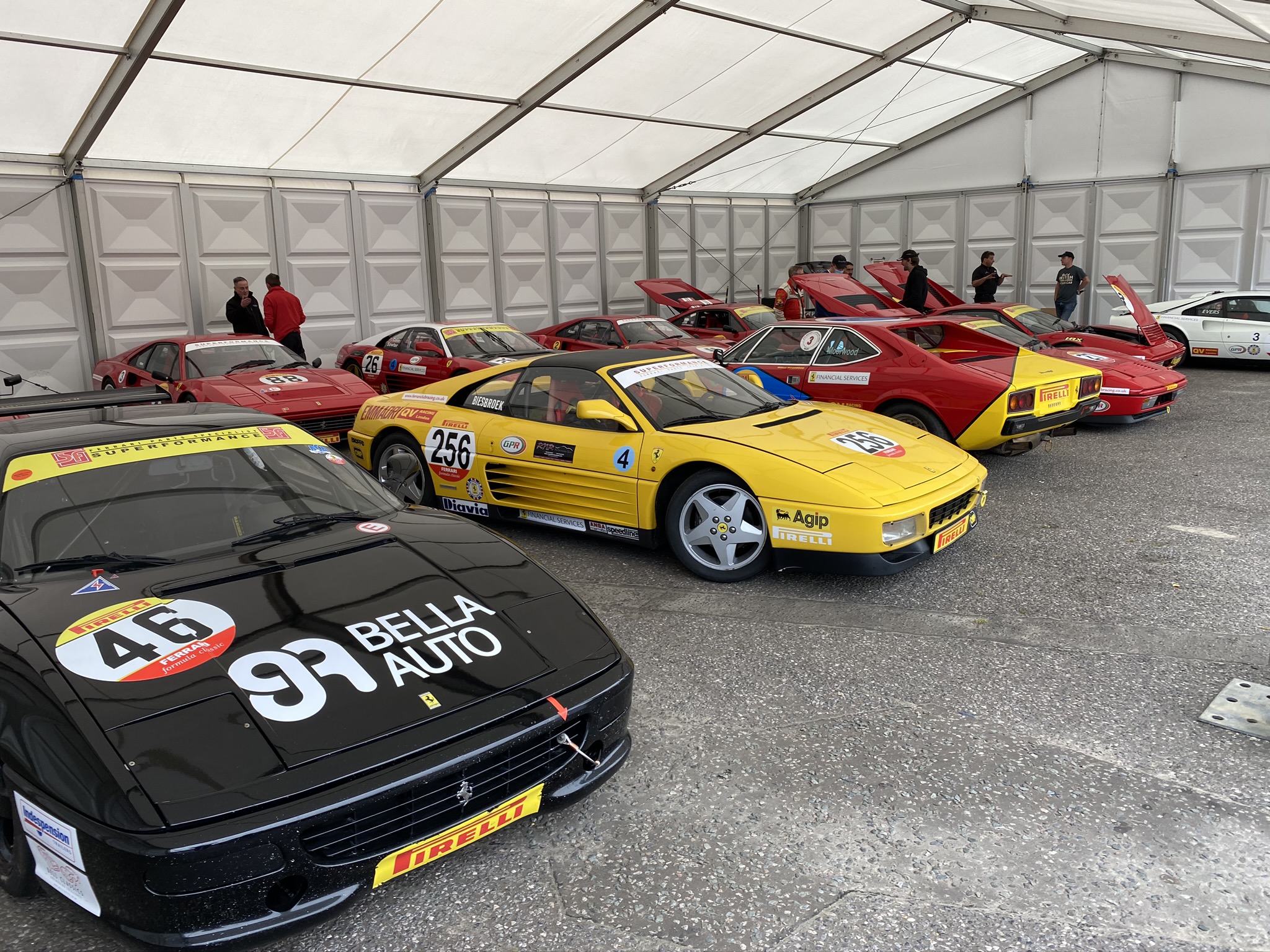 Race day one. This was the only day I could get some practice. The UK Owners club had a reserved paddock for the Pirelli Ferrari Trofeo Classic participants while the pitlane was reserved for the Ferrari 488 Challenge cars participating to the Ferrari Challenge UK. I received a warm welcome by the organising committee and met a few drivers of the race. What struck me immediately was the good atmosphere in the paddock. As an international guest to this racing series, and therefore a bit of an outsider, it was very comforting to be welcomed like this and get compliments on the car.